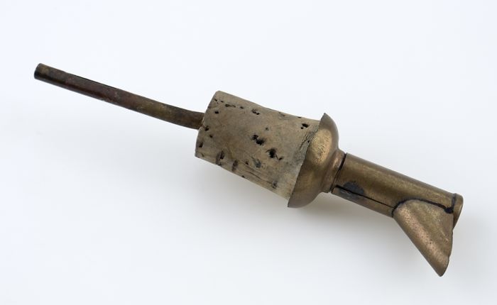 Koperen schenktuit of tap, met kurk, voor glazen fle...