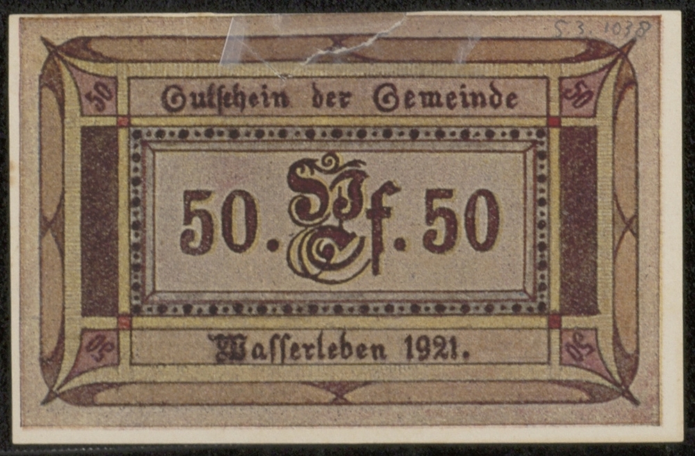 Bankbiljet, Noodgeld, Gemeente Wasserleben, 50 Pfennig