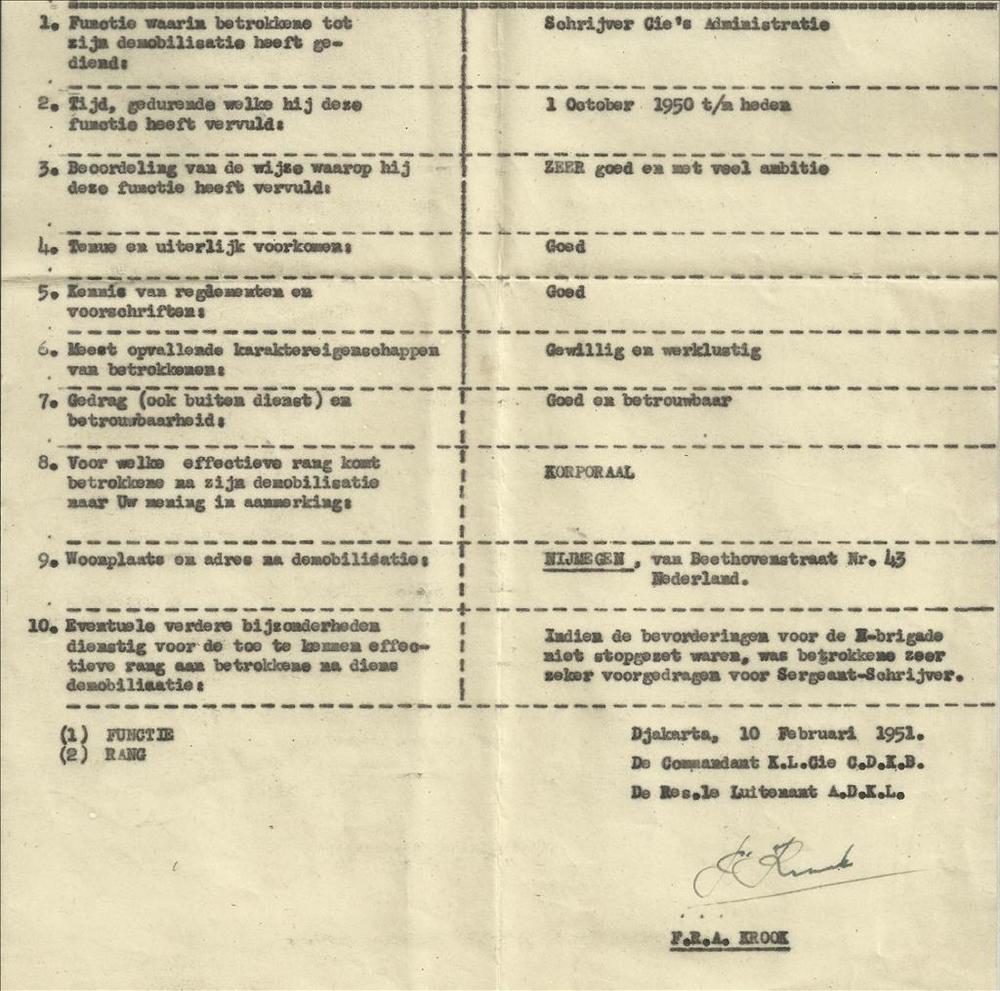 Beoordelingsformulier omtrent korporaal E. Hamer