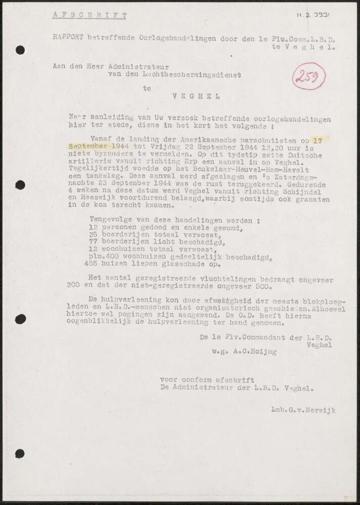 Rapport Plv Comm LBD, Veghel september 1944.