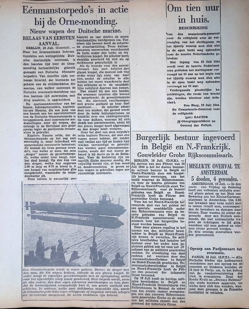 Een aantal krantenknipsels uit de oorlogsperiode 194...