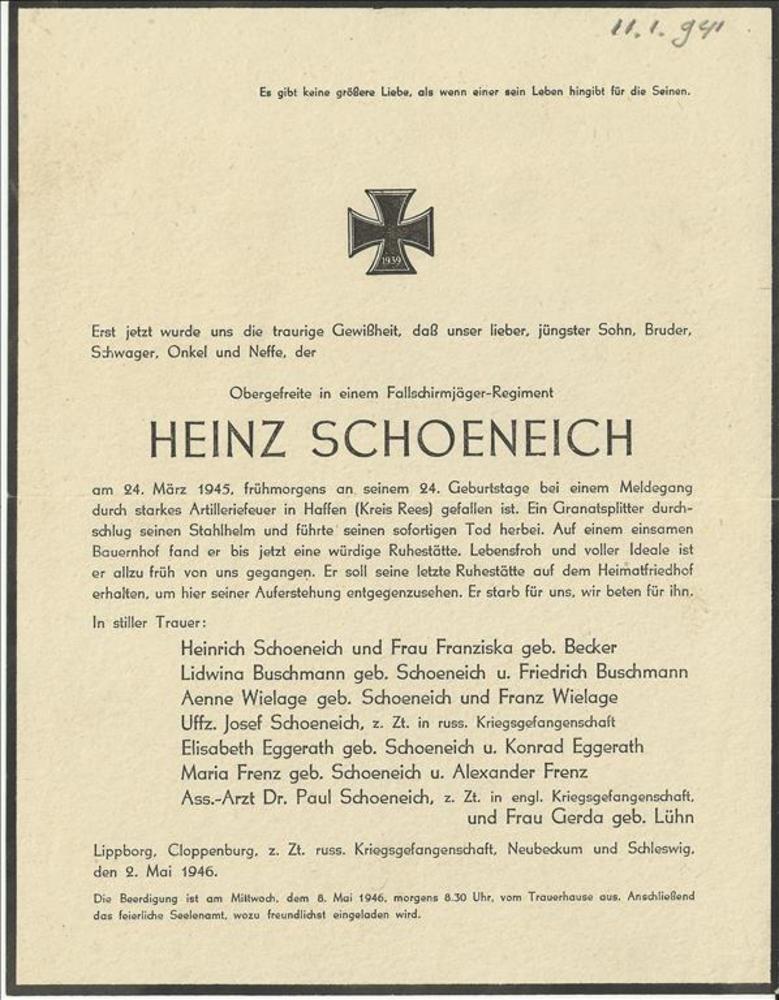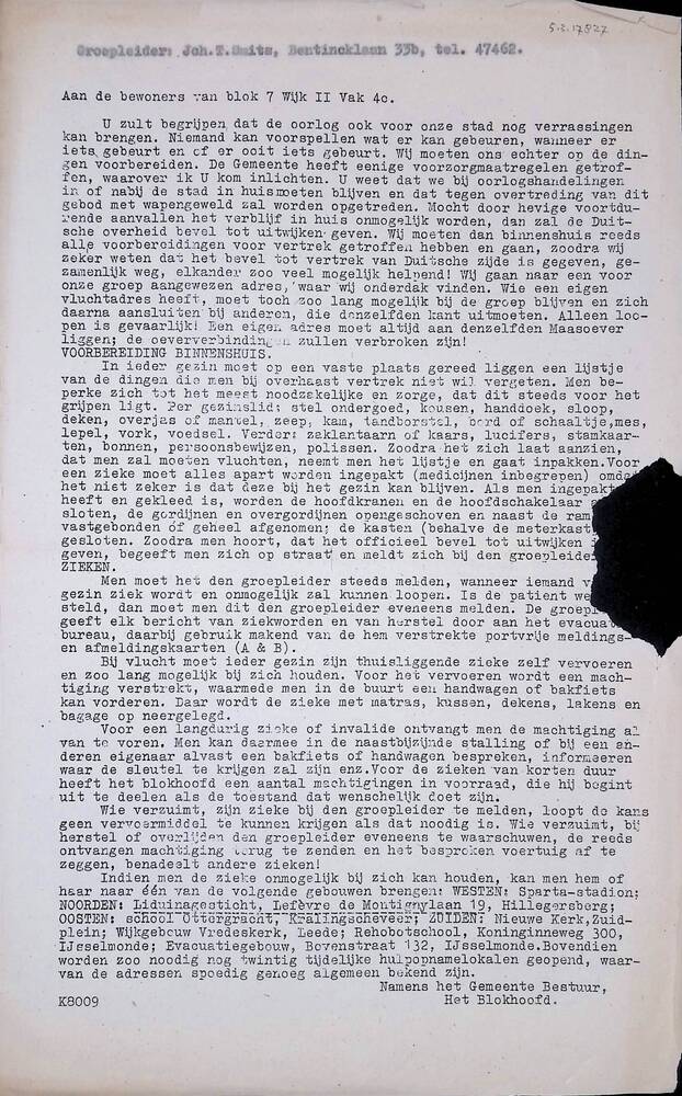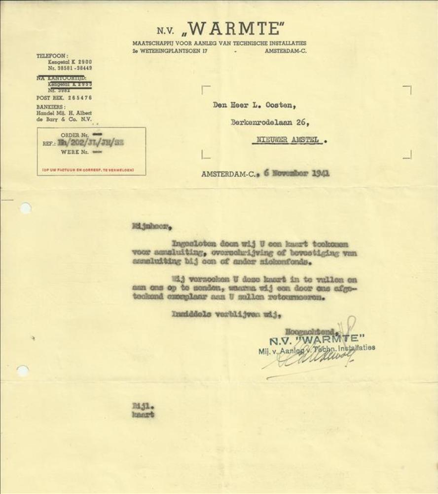 Dhr Oosten - 6 november 1941 N.V. Warmte Hilversum