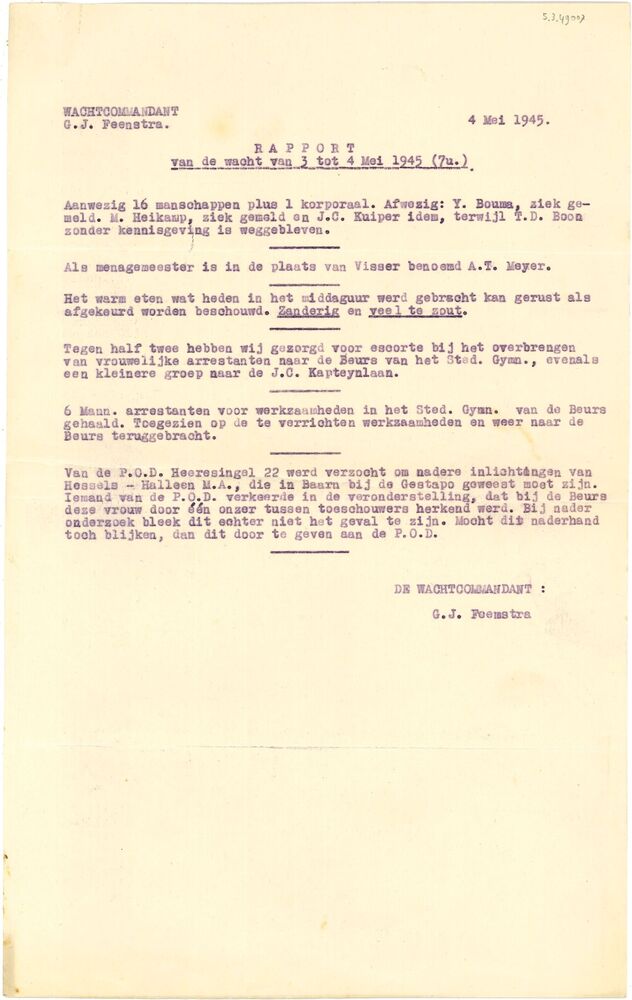 Rapport van de wacht van 3 tot 4 Mei 1945