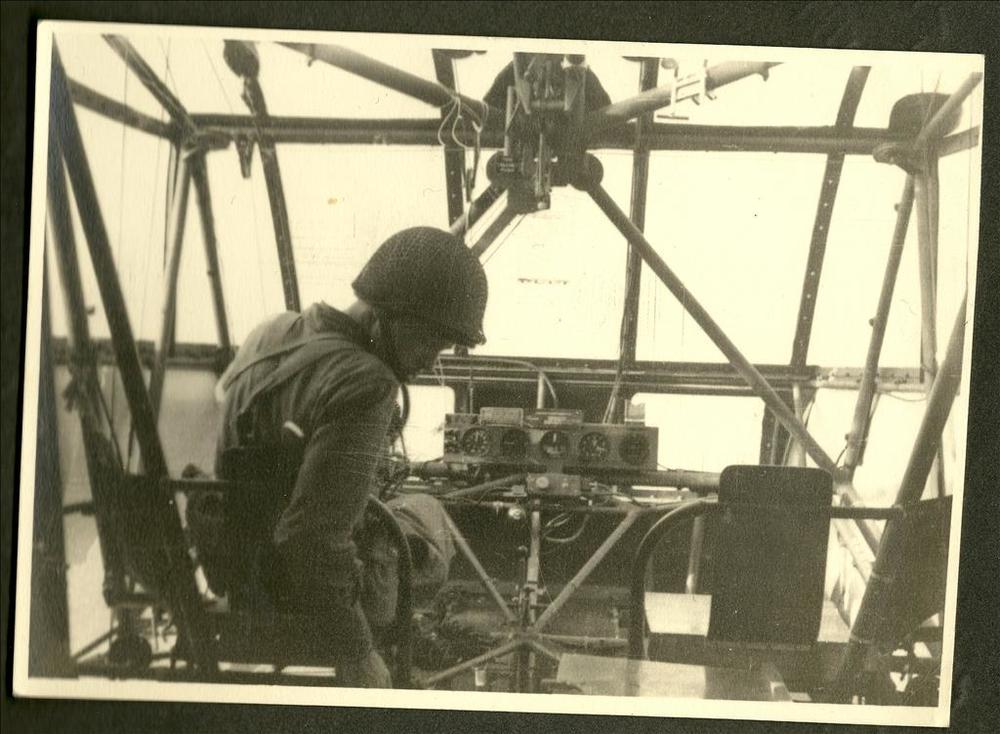 Amerikaanse parachut in cockpit van Waco Glider te G...
