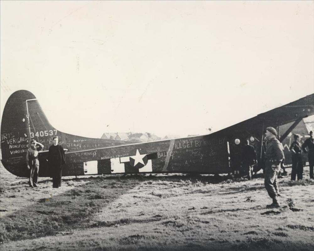 militair en burger bij WACO-glider