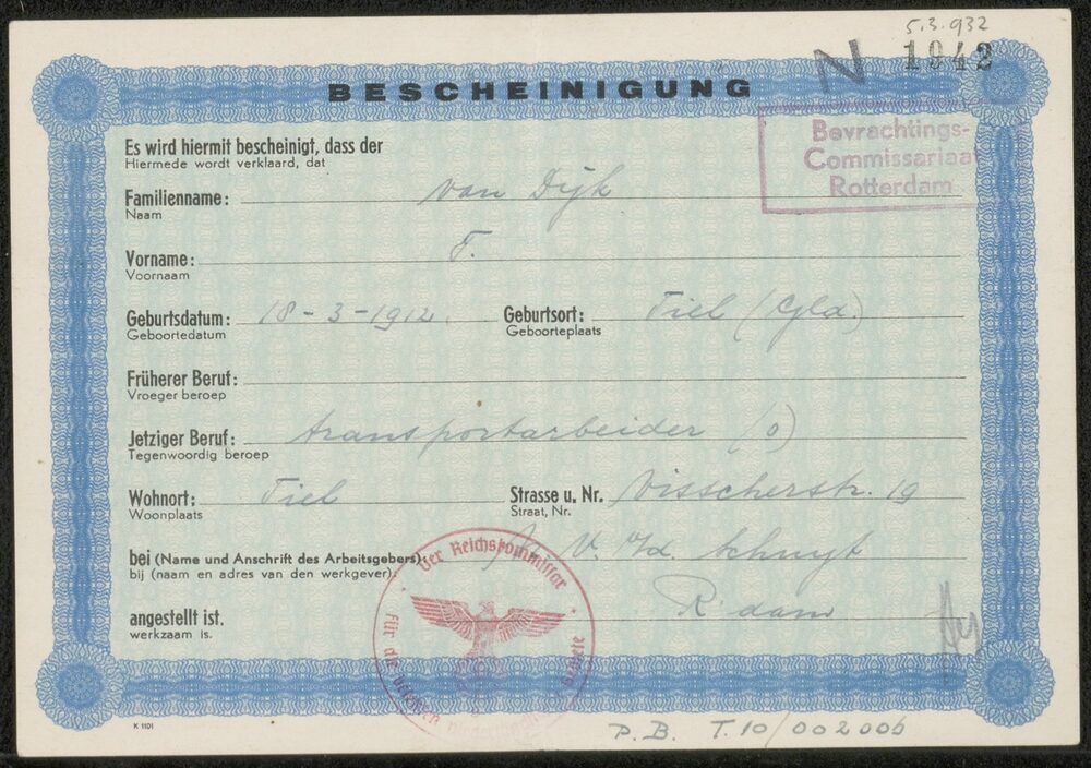 Bescheinigung, T. van Dijk