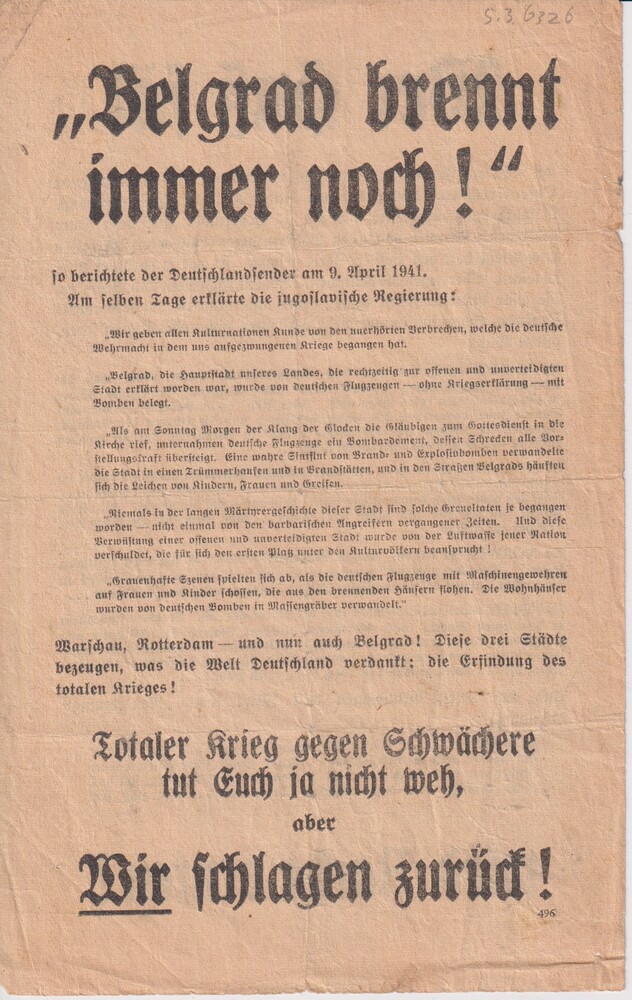 Pamflet: "Belgrad brennt immer noch!/Wer Hass sät" (...
