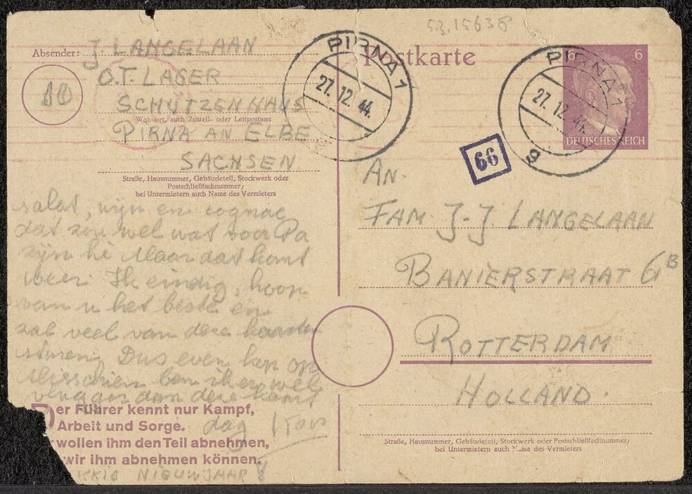 Handgeschreven briefkaart van J. Langelaan aan famil...