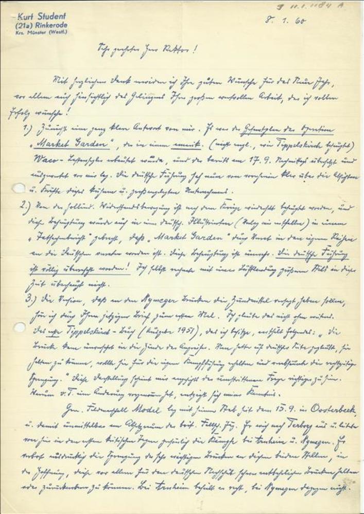 Handgeschreven bericht van Kurt Student