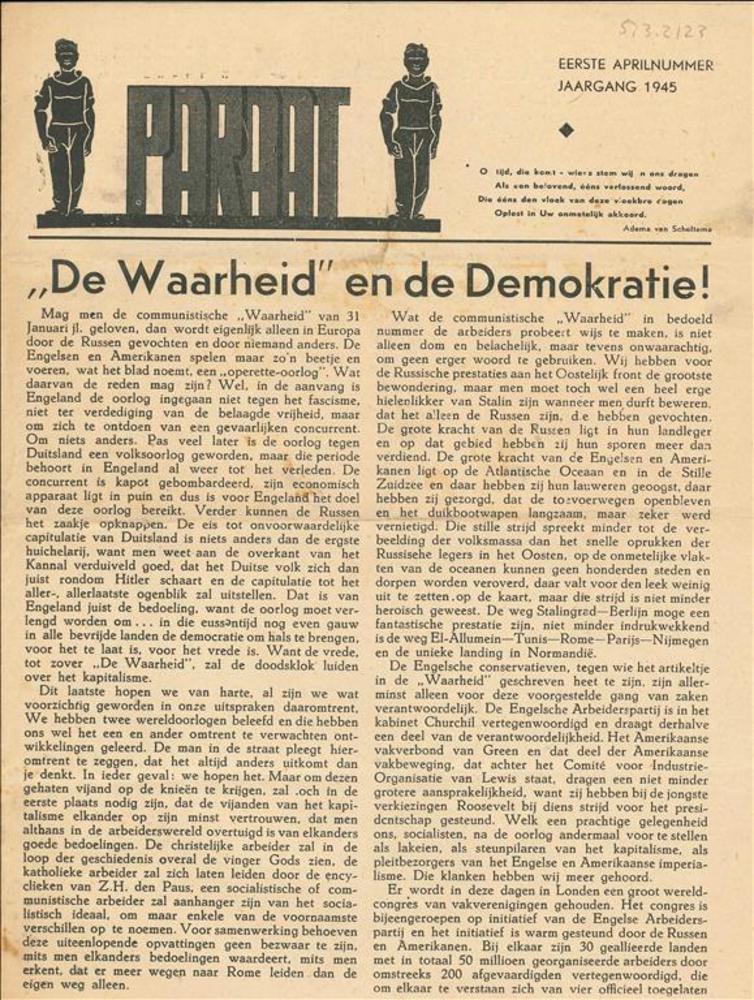 Paraat Jaargang 1945, eerste aprilnummer