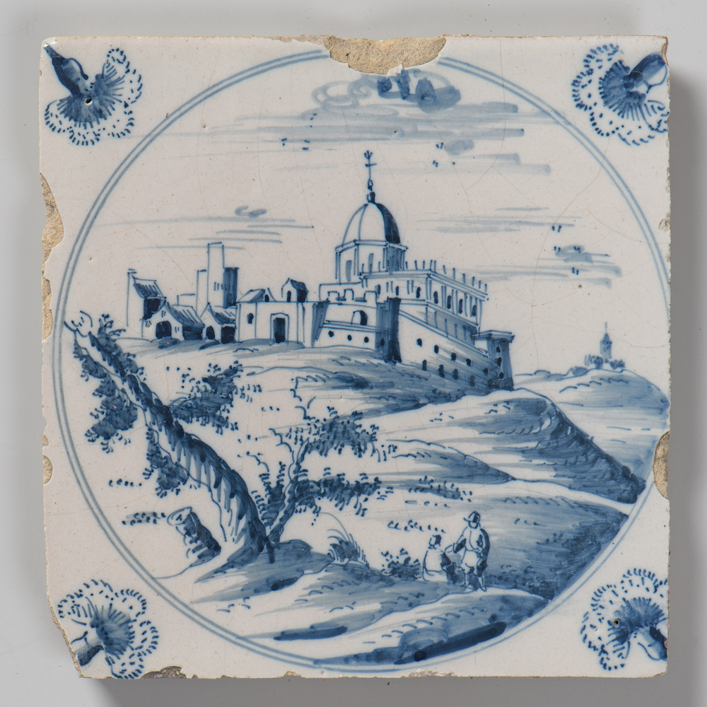tegel van aardewerk met tinglazuur, voorstellende: h...