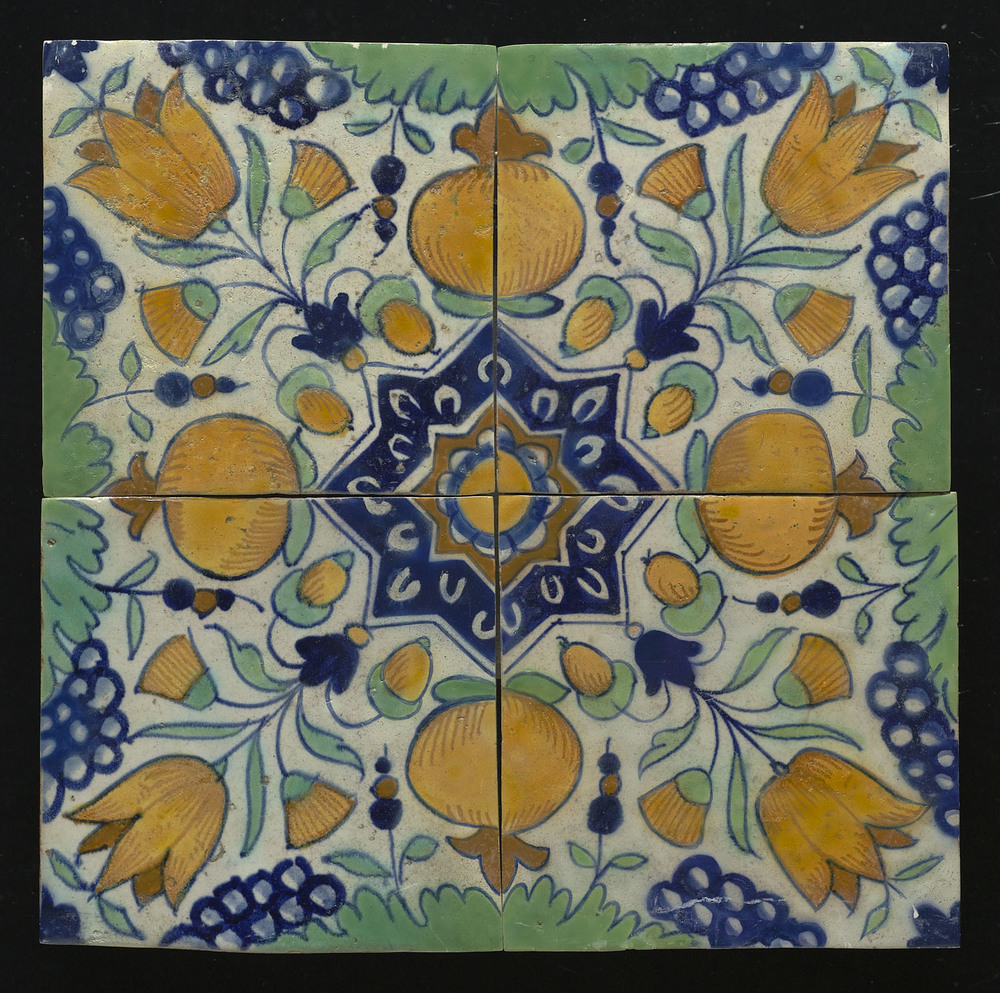 Tegelveld bestaande uit vier tegels van keramiek met...