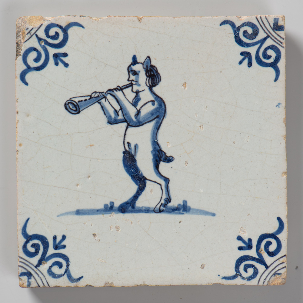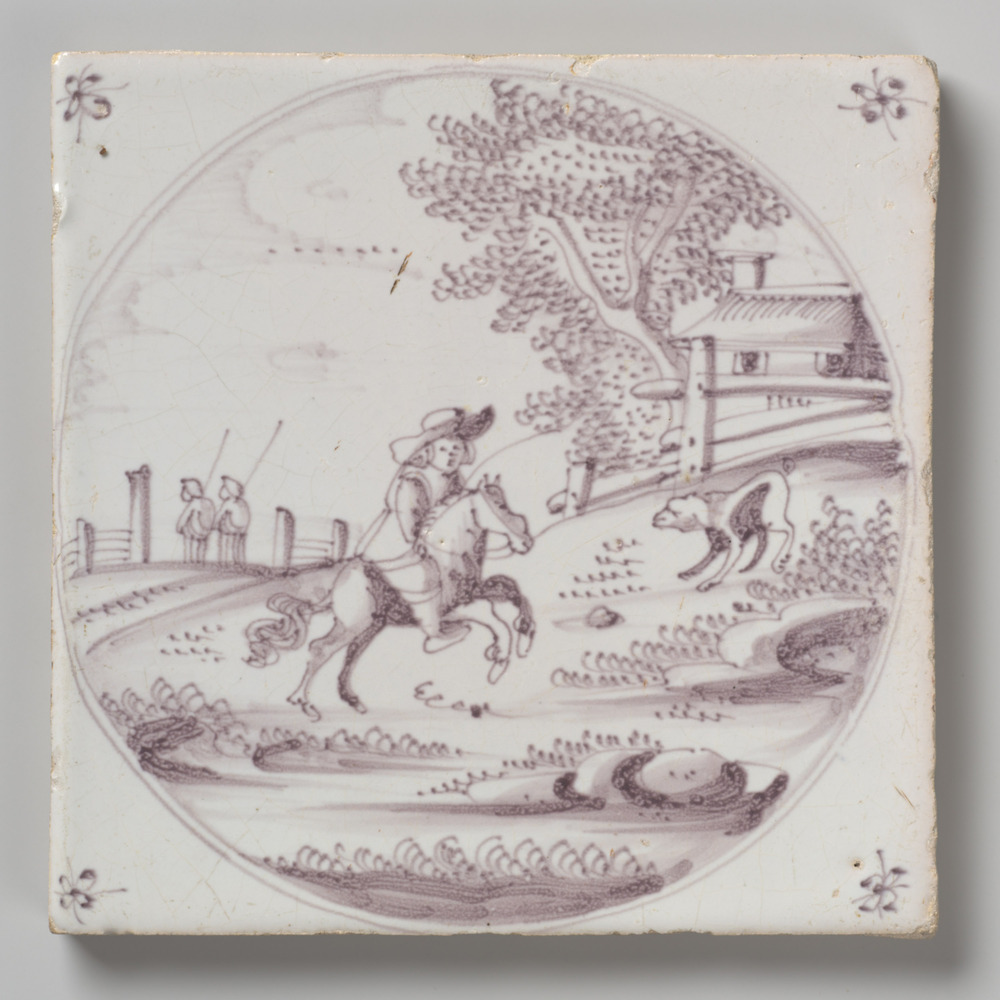 tegel van keramiek met tinglazuur, voorstellende: so...