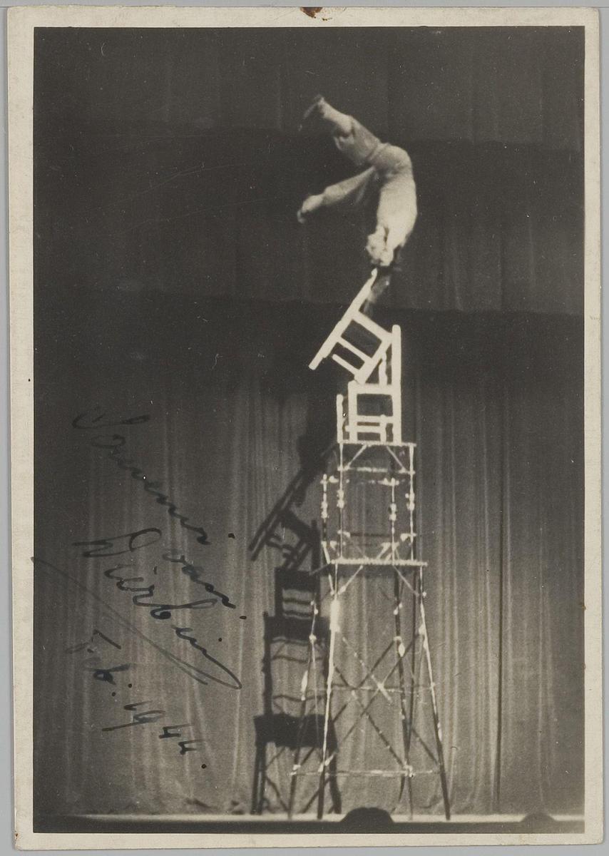 Acrobaat op stoelen. Feb. 1944