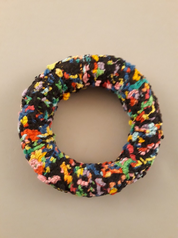 Broche/armband van staal, hout en garen