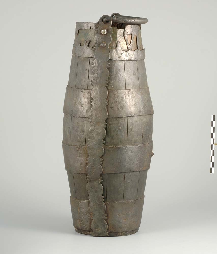 Houten emmer met beslag van ijzer en brons uit de la...