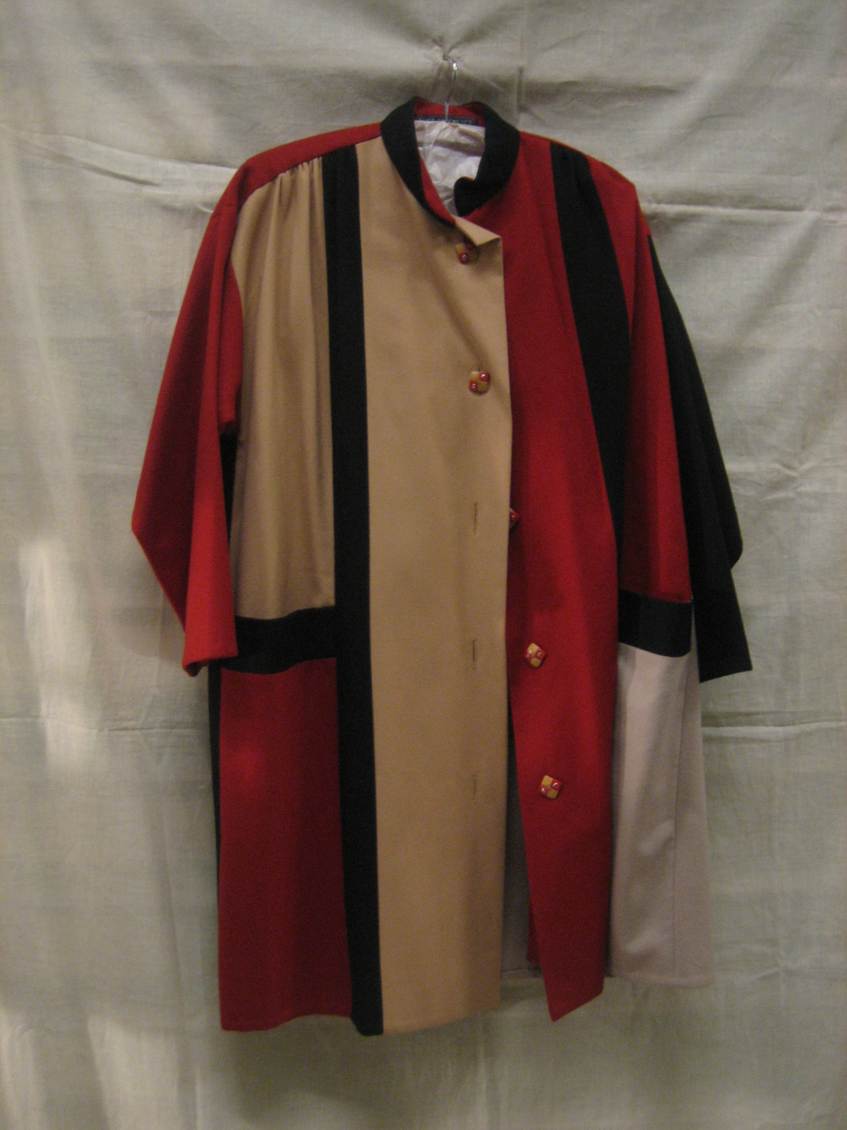 Mantel van beige, rode en zwarte wol met geometrisch...