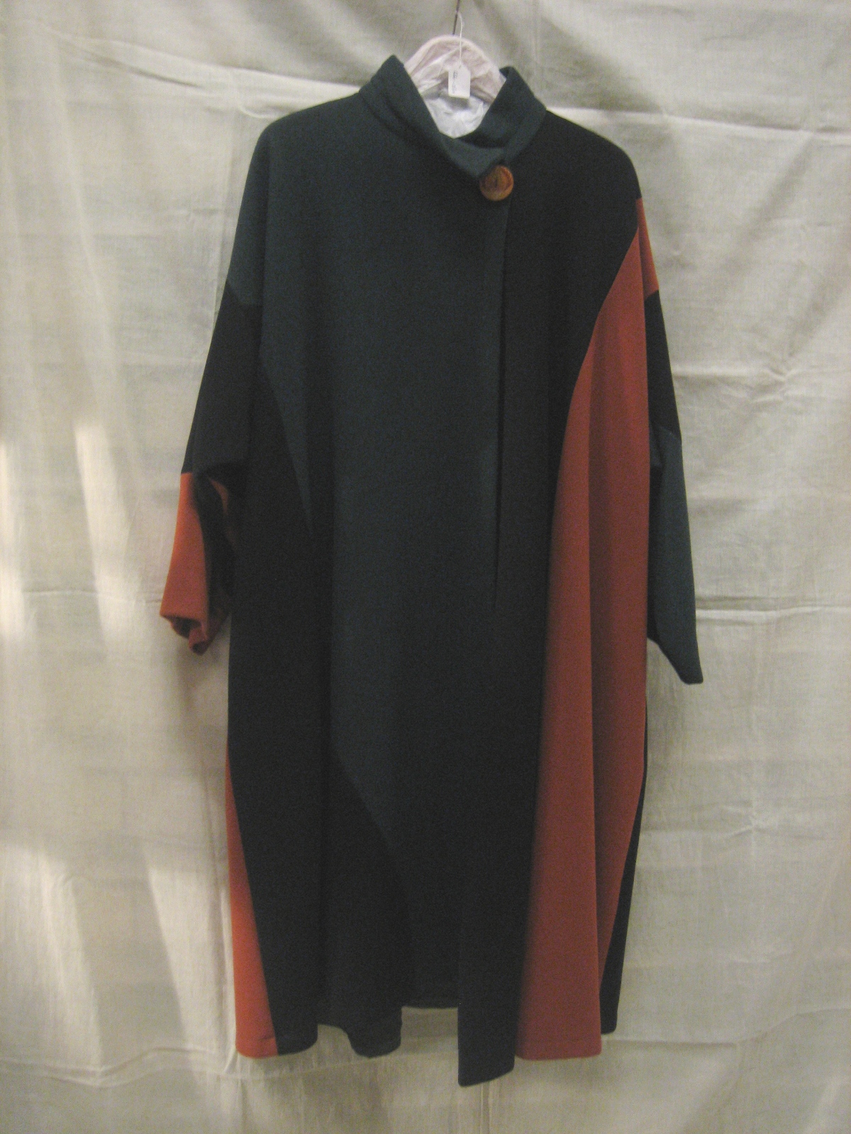 Cape van double face rode wol, 2 cirkelvormen aan el...