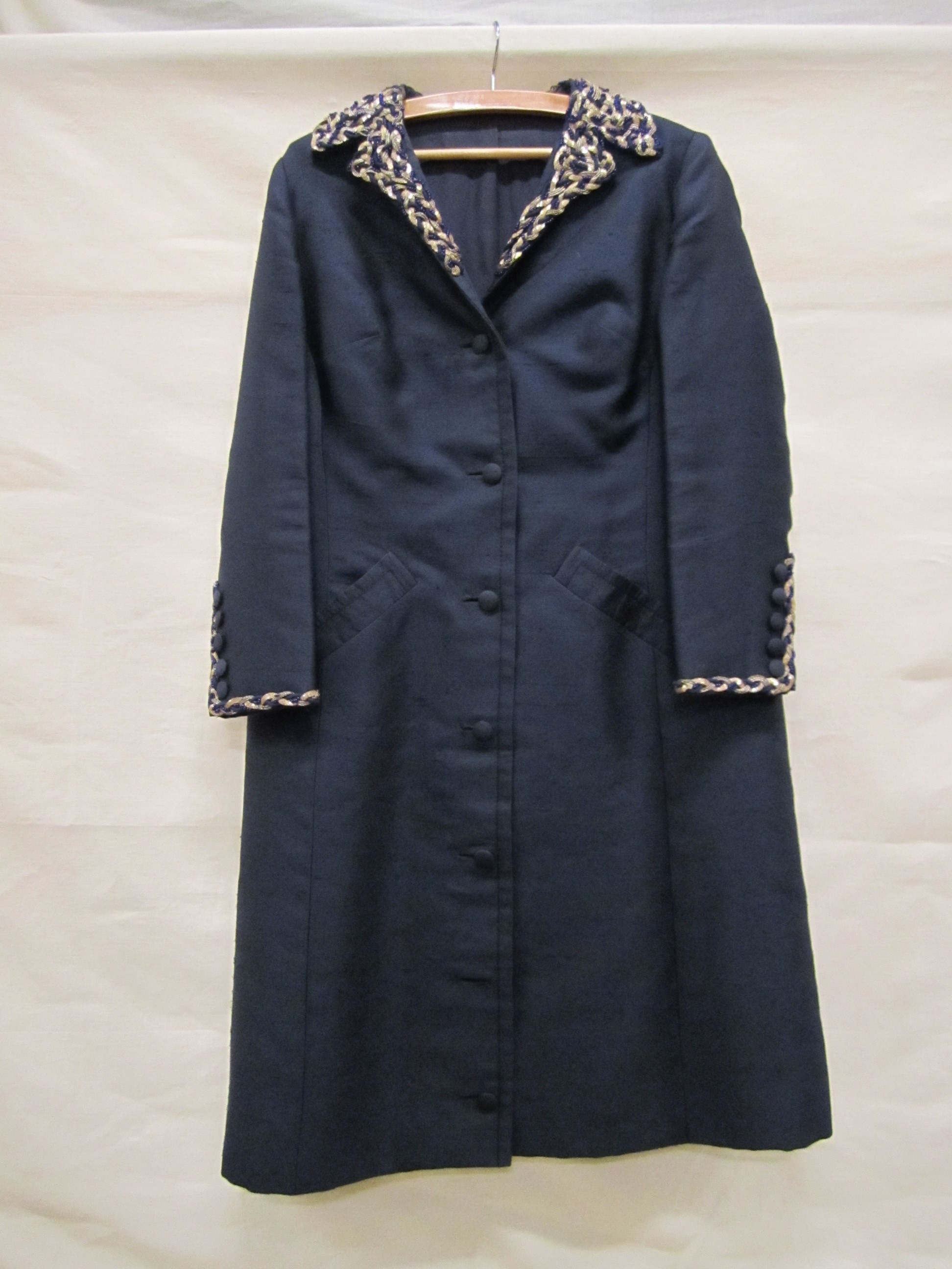Mantelpak bestaande uit jasje en rok van donkerblauw...
