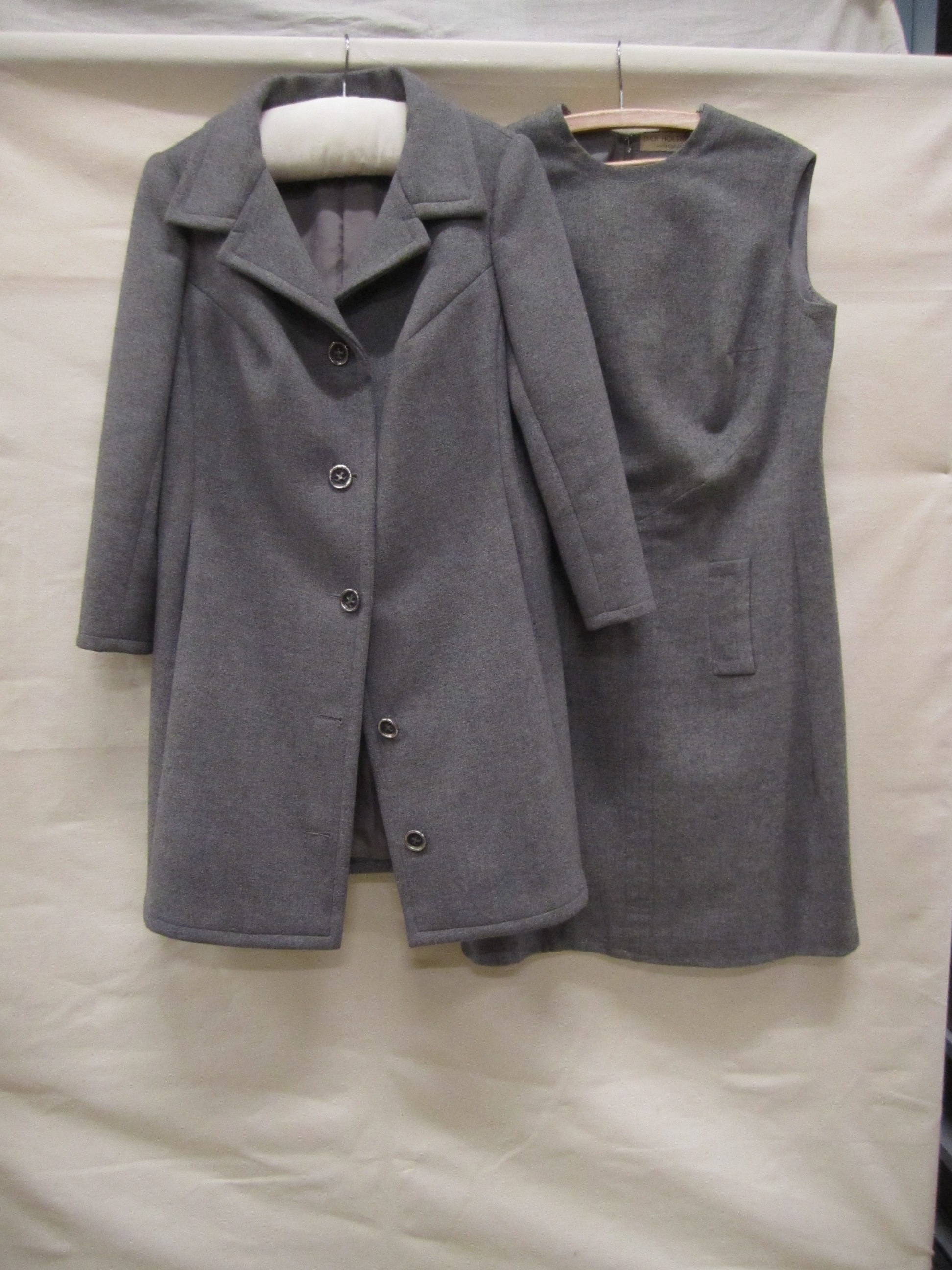 Ensemble van grijze wol, bestaande uit jurk en mantel