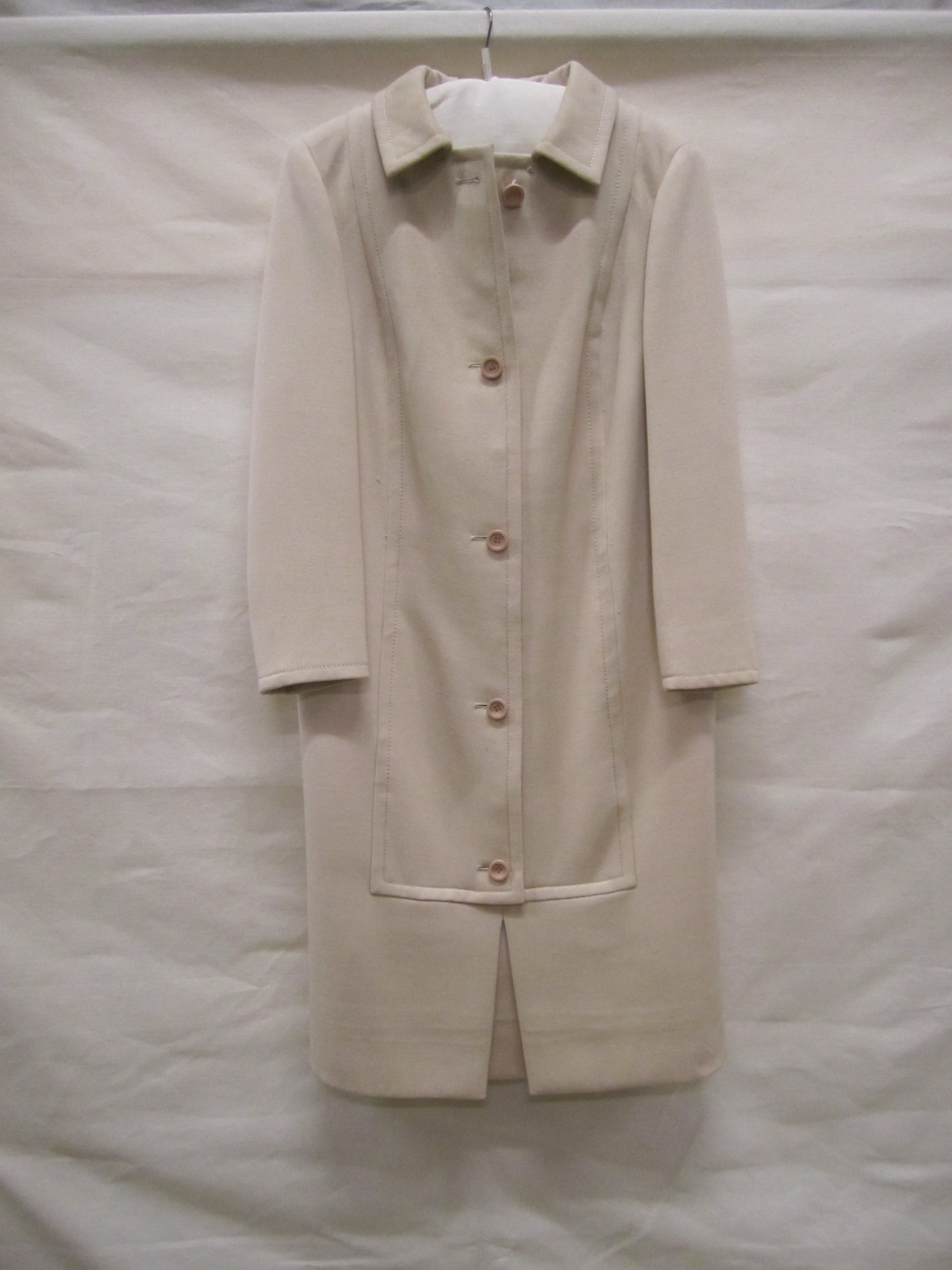 Robe manteau van beige wol, halflang model met lange...