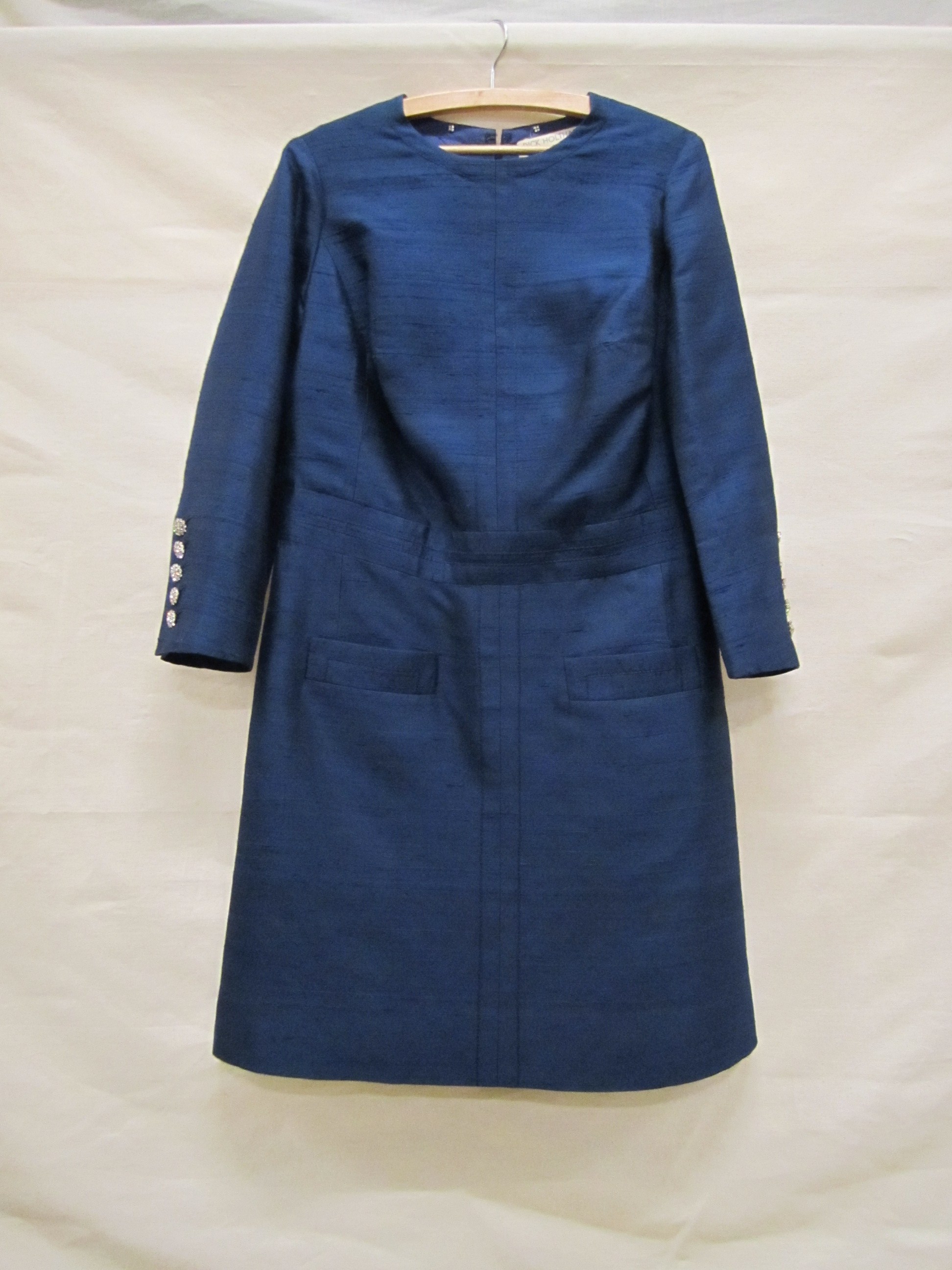Jurk, model robe-manteau, van donkerblauwe thaizijde...