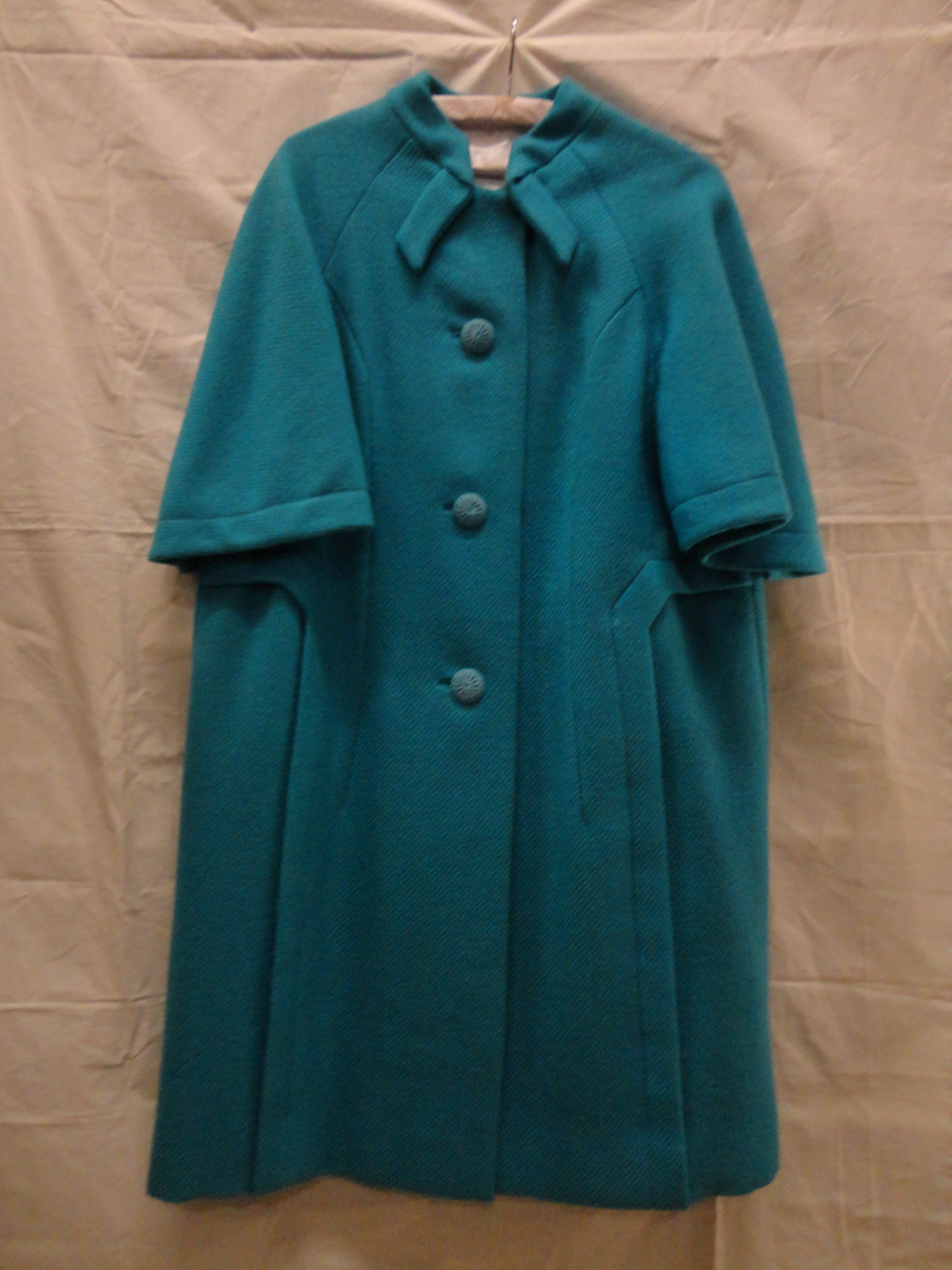 Mantel van turquoise wol in keperbinding, halflang m...