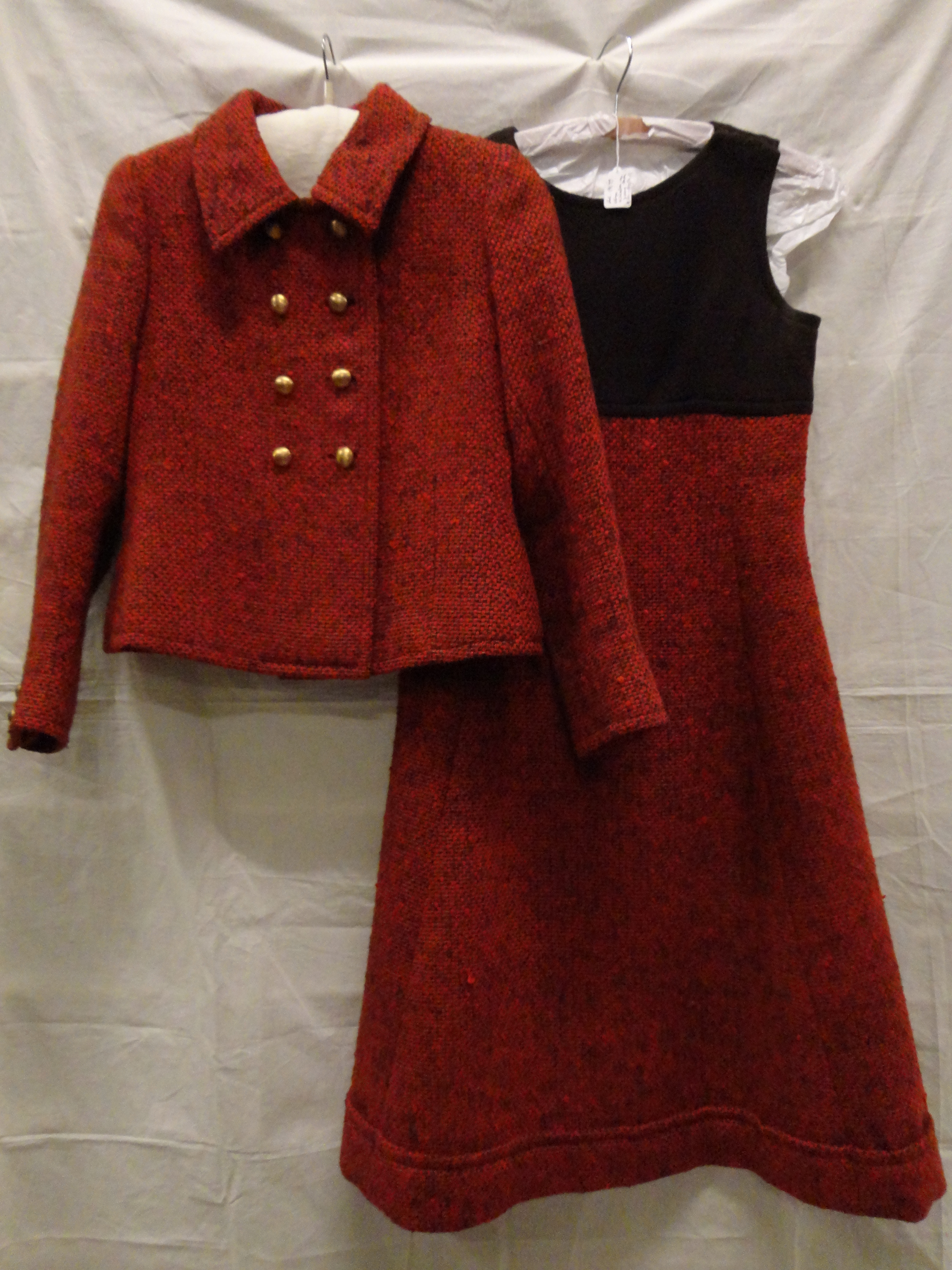 Ensemble bestaande uit jurk en jasje van rood wollen...