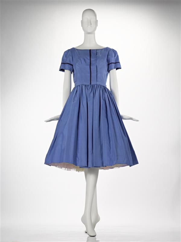 Cocktailjurk van lichtblauwe zijde, driekwartmodel, ...