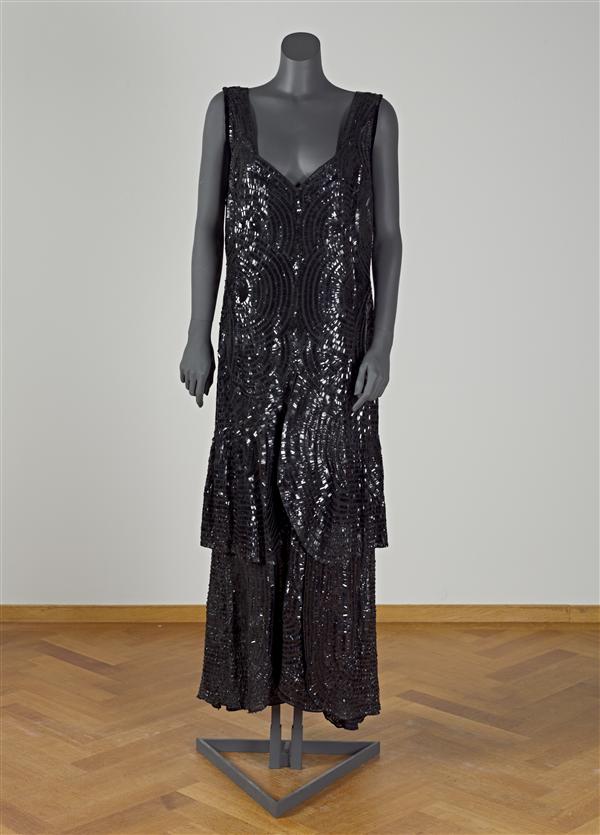 Avondjurk, lang hemdmodel. van zwarte tule en crêpe,...