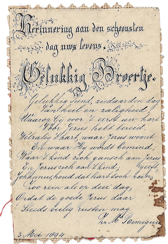 Prent 'Ter herinnering aan de eerste H. communie van...