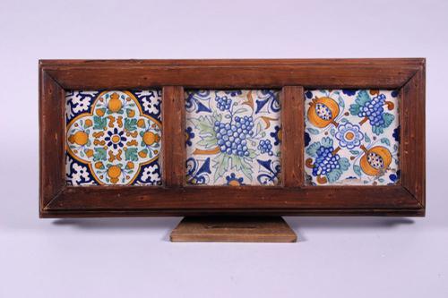 Nederlands tegeltableau met drie polychrome tegels