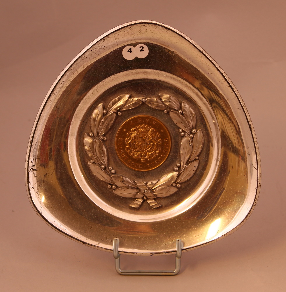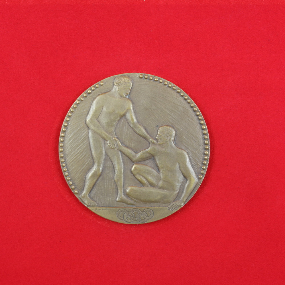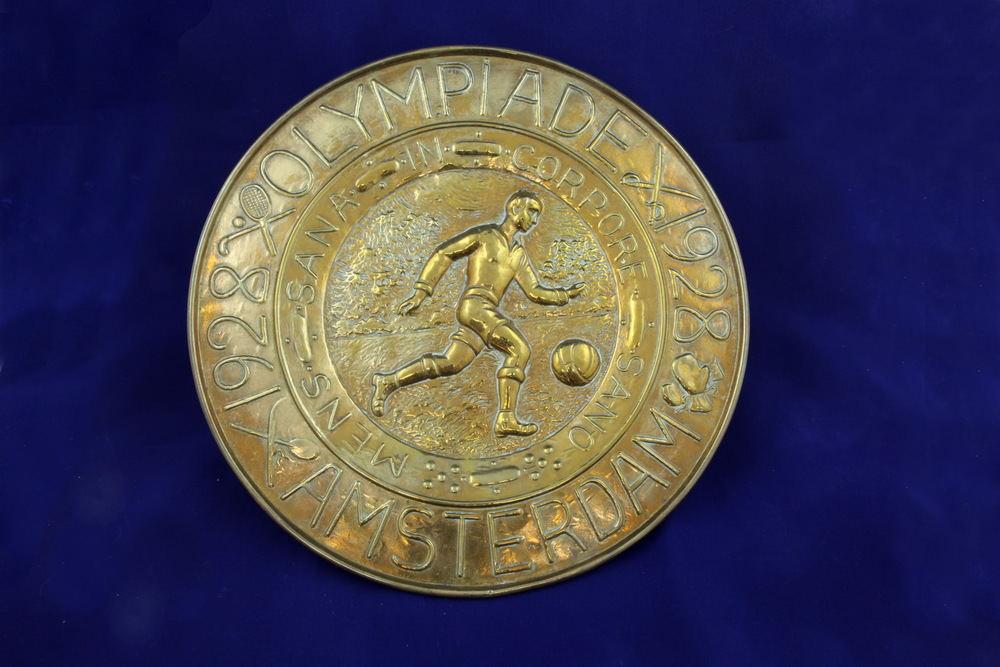 Koperen wandbord 'voetballer' van de Olympische Zome...