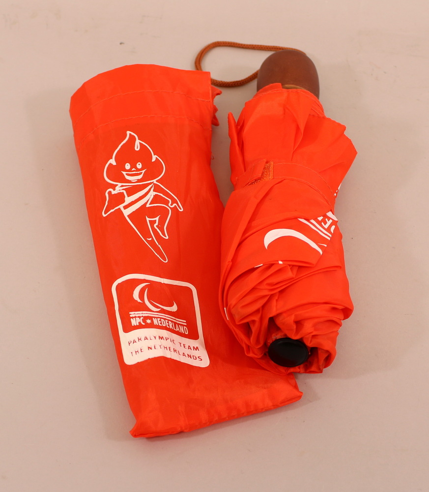 Opvouwbare oranje paraplu. Paralympische zomerspelen...