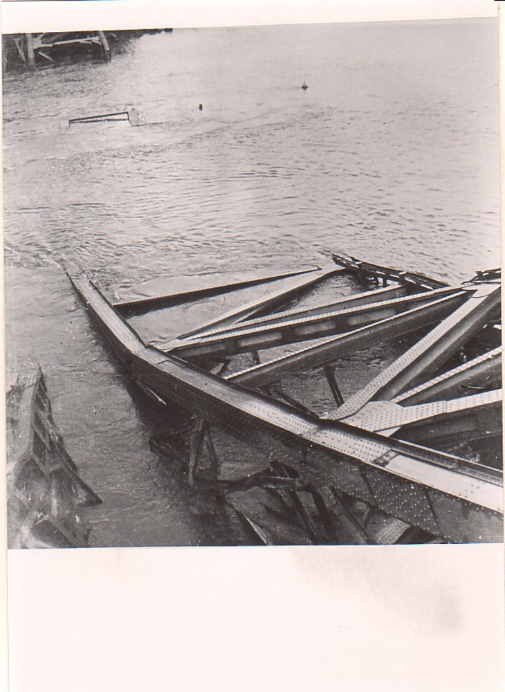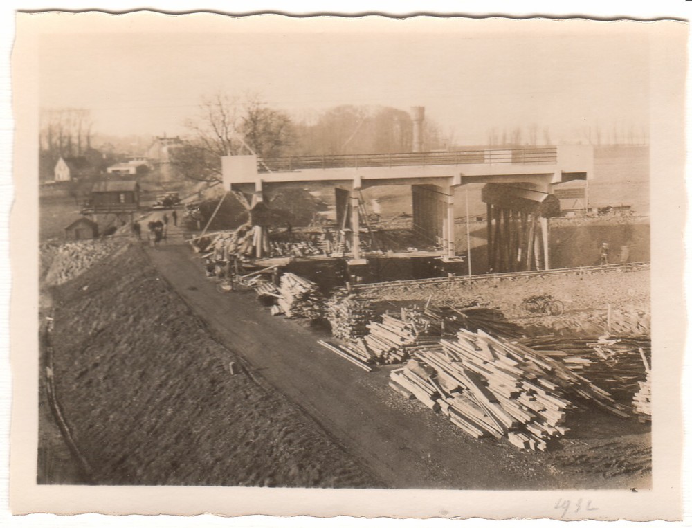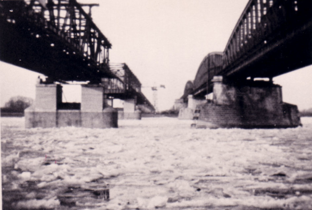 Verkeersbrug in aanbouw, met ijsgang 28 Januari 1932