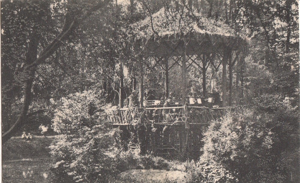 Muziektent met muziekkorps.