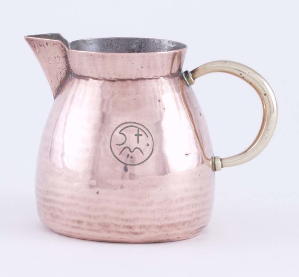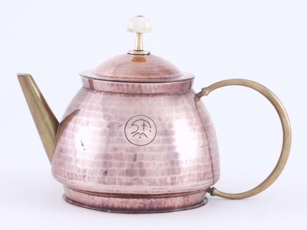 beddenpan van geelkoper met ronde bak, scharnierend ...