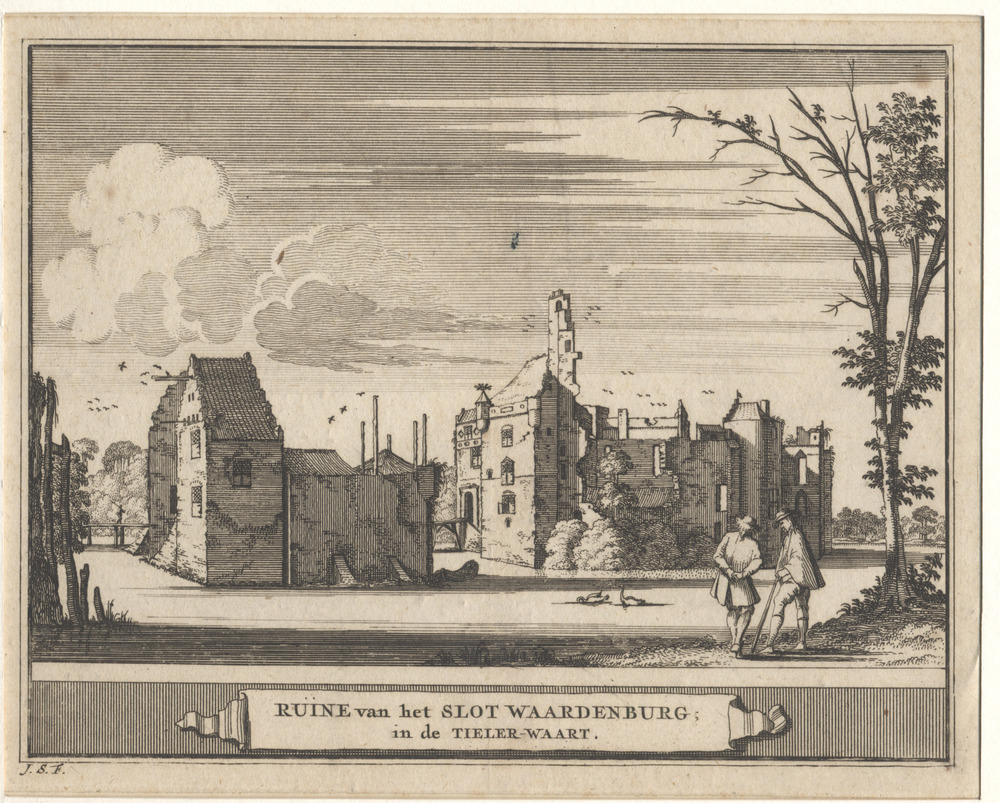 Gezicht op ruïne van slot Waardenburg bestaande uit ...