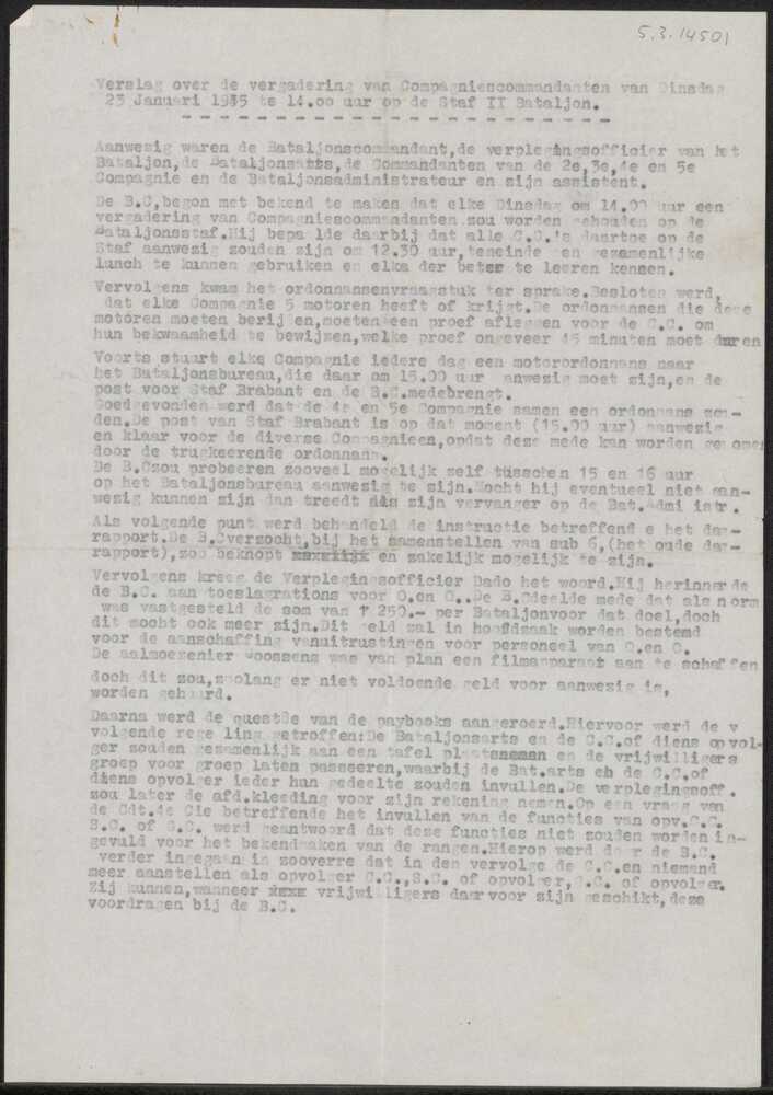 Verslag over de vergadering van Compagniescommandant...