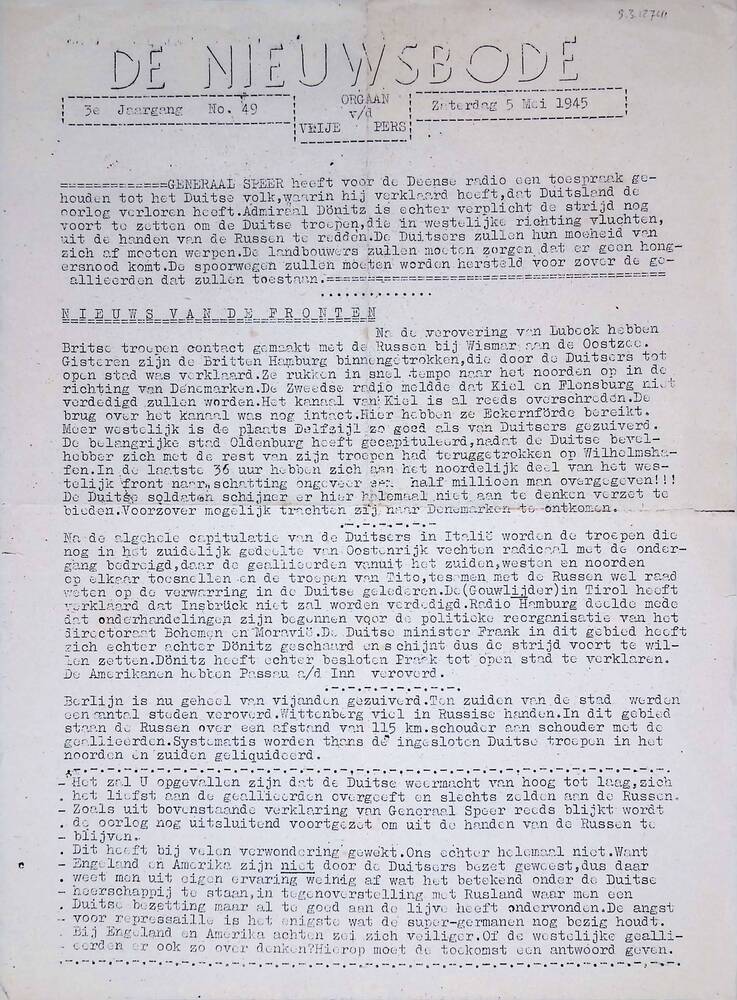De Nieuwsbode, no. 49, 5 mei 1945
