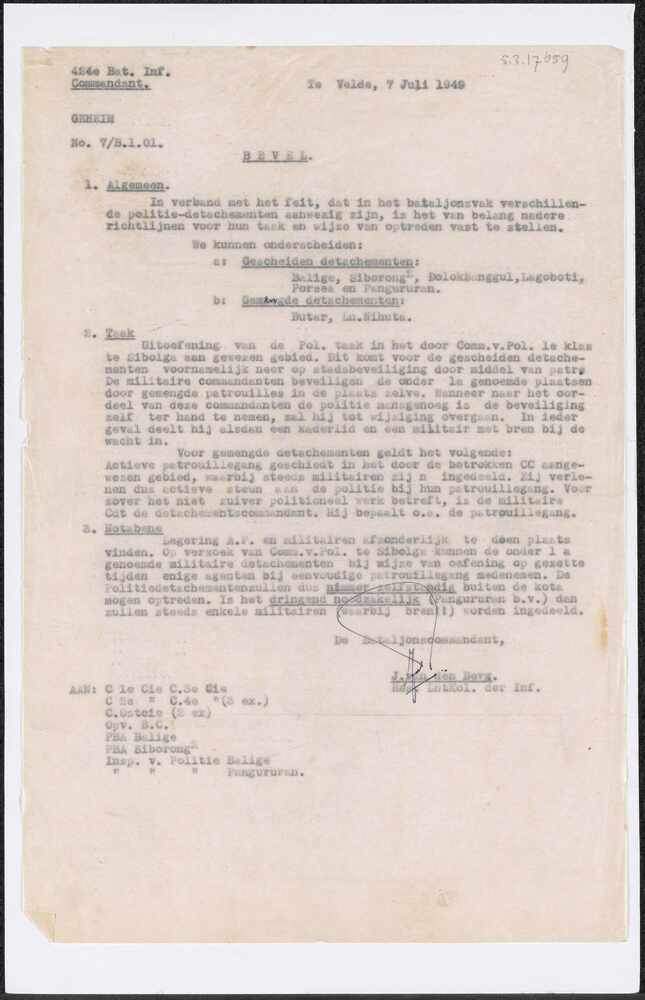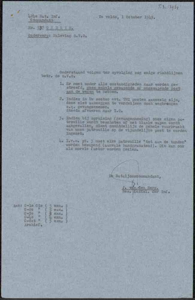Brief van de commandant 424e Bat. Inf over naleving ...