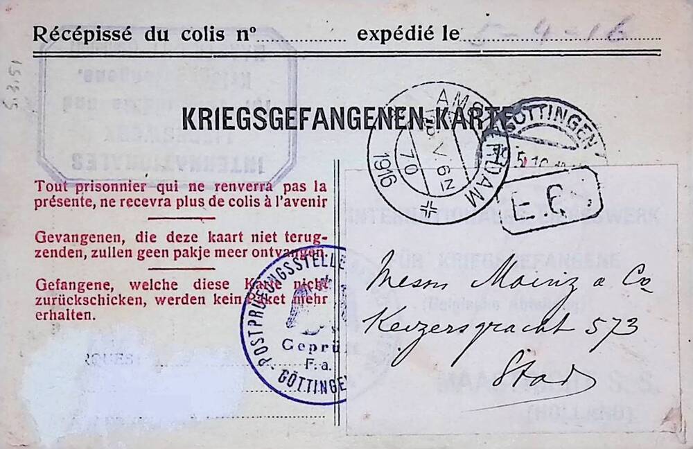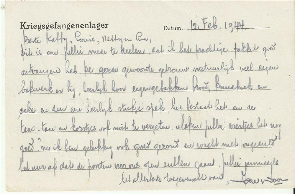 Ansichtkaart Jan P.C. van Doorn uit krijgsgevangensc...