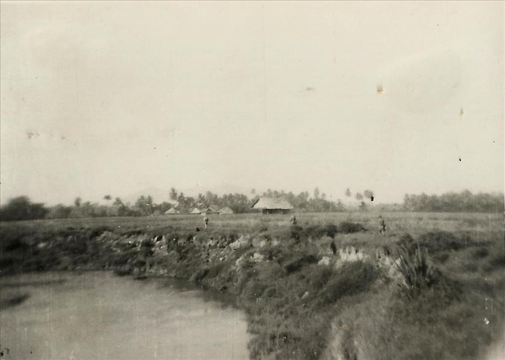 Indië na WO 2: kali, rivier, oever, kampong, landschap