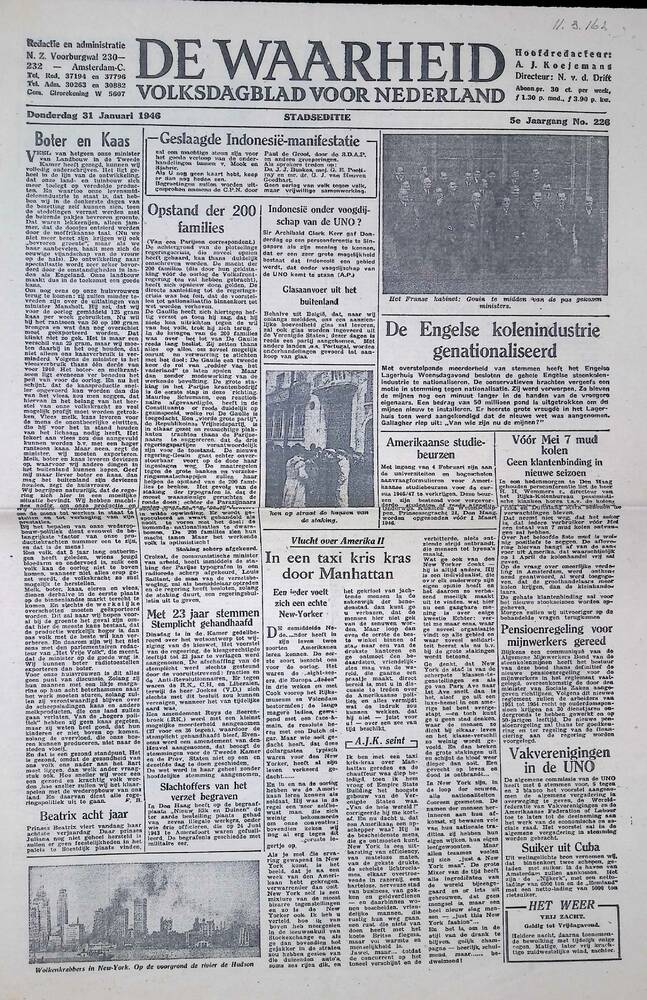 De Waarheid, 31 januari 1946, 5e jaargang no 226