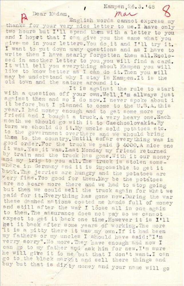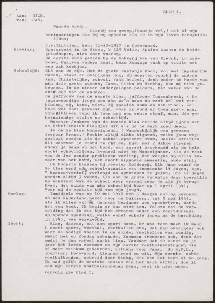 Brief van Gé Verbeek in Heerte aan familie in Rotter...