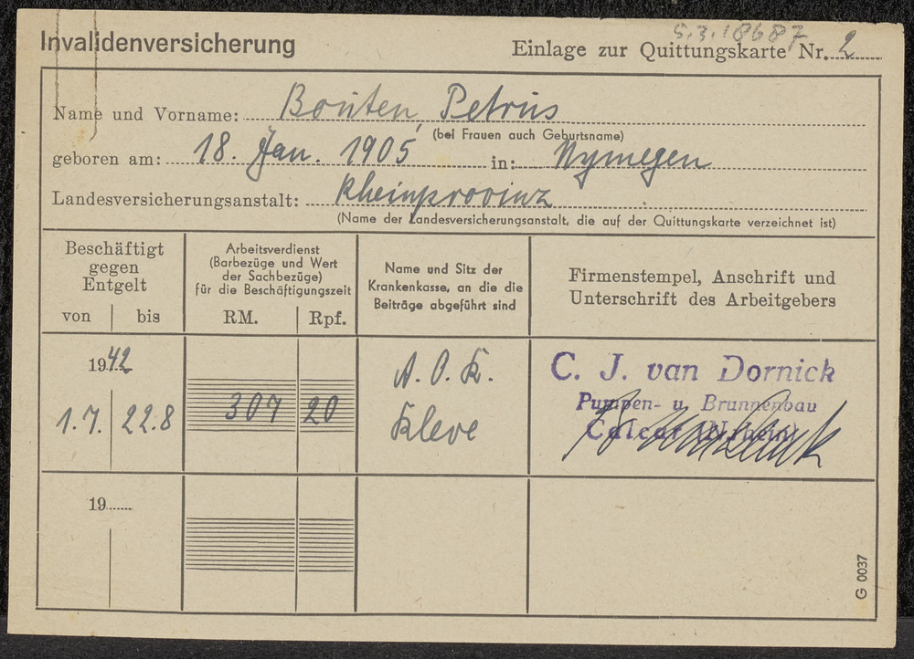 Inlegvel bij Quittungskarte Nr. 2 van de Invalidenve...