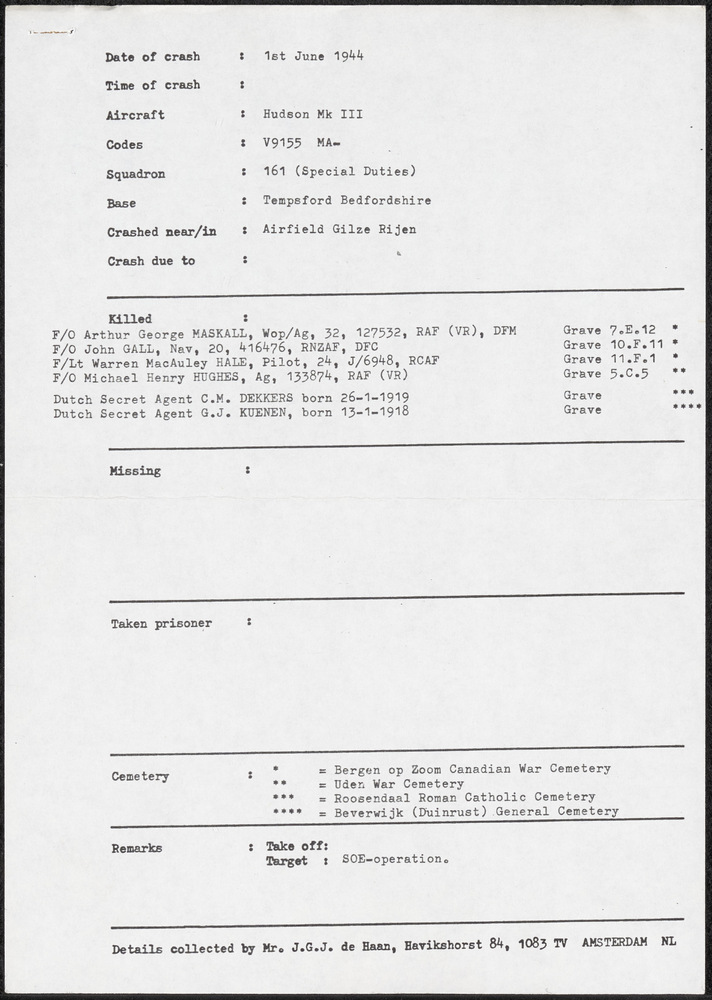 Vliegtuigcrash, 1 juni 1944, een Hundson Mk. III