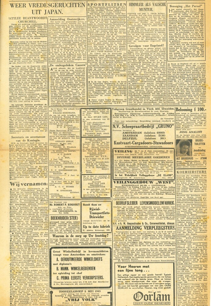 Het Parool. Vijfde Jaargang No 125. Woensdag 6 juni ...