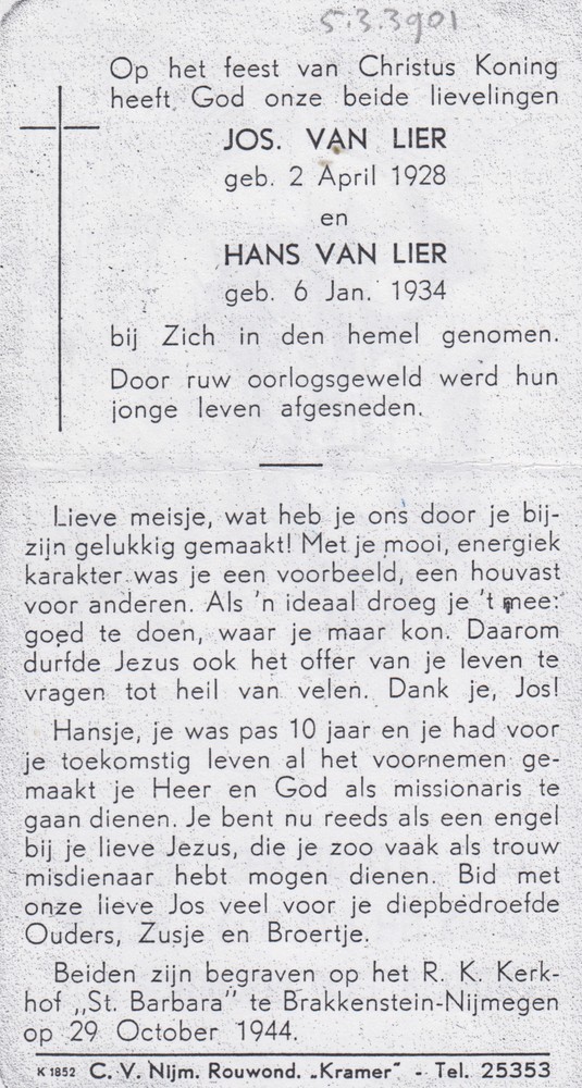 bidprentje J. van Lier en H. van Lier