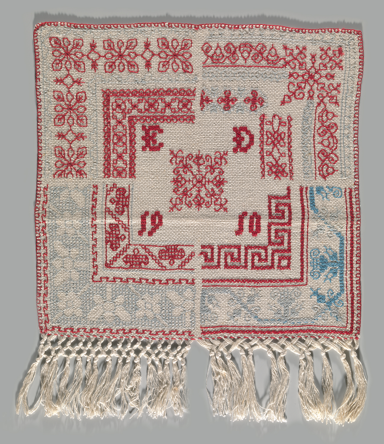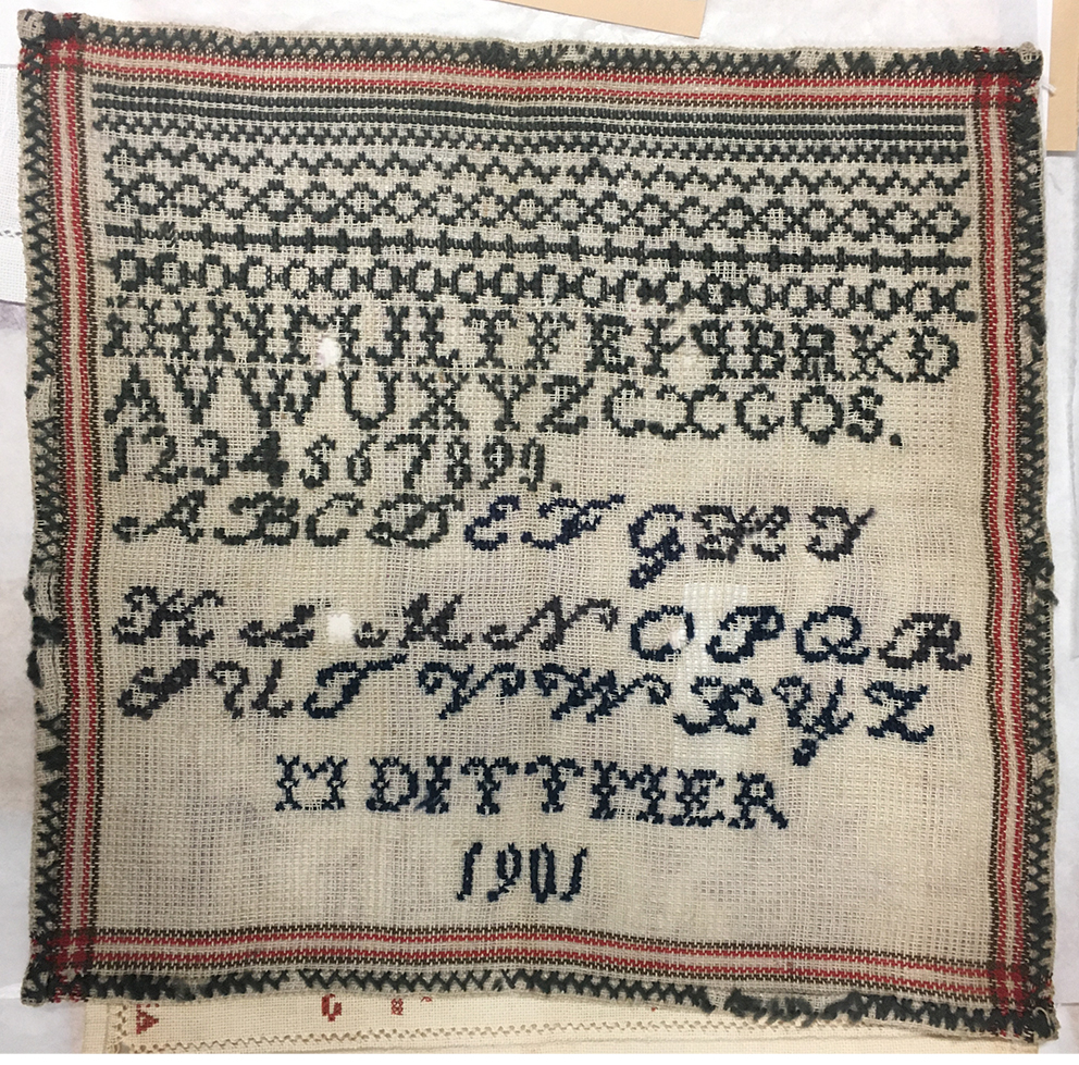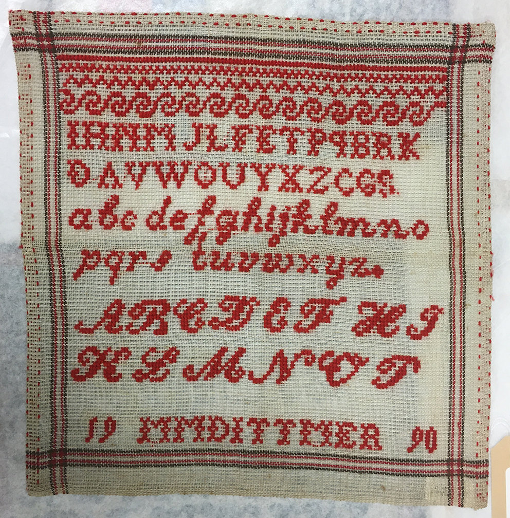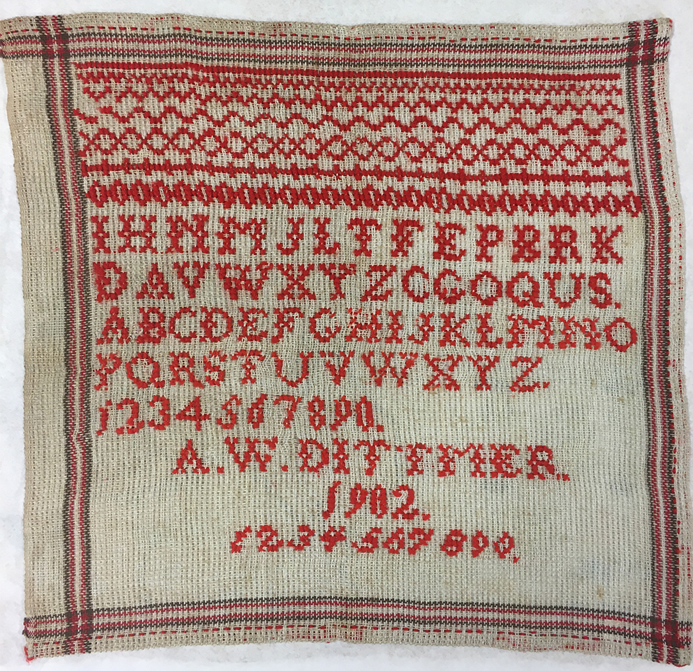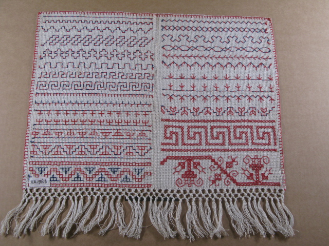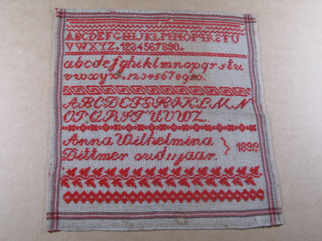 Rode schoollap (type) van Anna Wilhelmina Dittmer